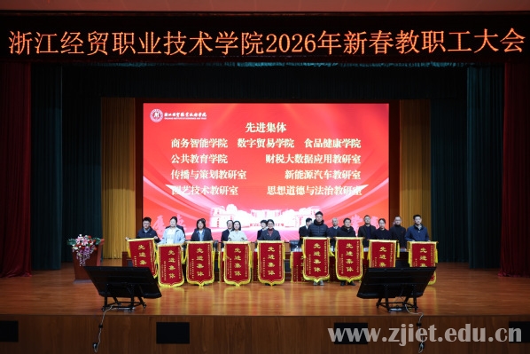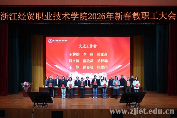 校长郭福春部署学校2026年工作,从找准发展定位、理清职教发展逻辑、落地实干关键举措三个维度,提出了聚焦制度建设,实施“制度深化年”行动,激活全员干事创业活力;聚焦师资建设,实施“强师兴校”行动,夯实高质量发展人才支撑;聚焦学生成长成才,实施立德树人深化行动,筑牢高质量发展育人根基;聚焦双高建设,实施“攻坚提质”行动,打造全国财经商贸类高职标杆;聚焦高技能人才集群培养,实施“教学关键要素改革”行动,精准供给服务区域经济发展;聚焦智慧场景应用,实施“数智融合”行动,推动人工智能生态校建设;聚焦产教融合与社会服务能力,实施“赋能增效”行动,以社会贡献争取办学资源;聚焦职业本科创建,实施“提档升级”行动,聚力夯实长足发展根基;聚焦办学影响力提升,深入实施“品牌强校”行动,全方位、多维度传播经贸好声音;聚焦改革发展突围,实施“强基创优”行动,久久为功谱写崭新篇章。他勉励全体经贸人以拼搏之姿凝聚“幸福经贸”的向心力,以实干之举提升每个人的幸福感、获得感和成就感,共同擘画属于学校的美好未来。