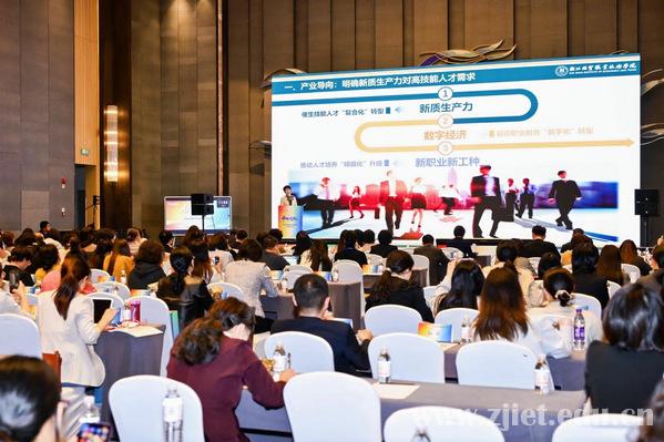 报告中,刘秀丽结合学校办学实际,聚焦产业导向、政策领航、学校实践与努力方向四个维度,系统分享了学校在深化教育教学关键要素改革方面的探索与成效。